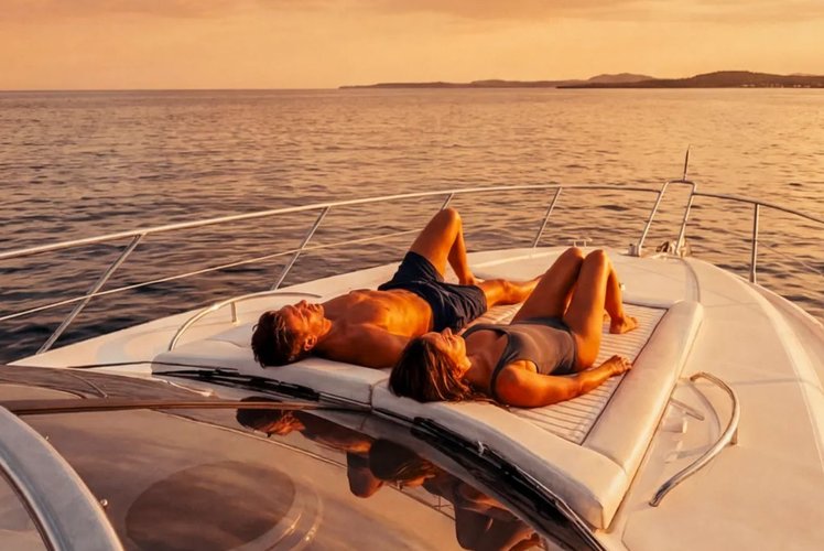 Luxury 50ft Sunseeker Motor Yacht with Spacious Sunbeds and Premium Lounge Areas