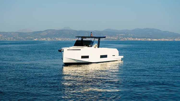 Performance is impressive: powered by three outboard motors, the D42 delivers cruising speeds around 28 knots and can reach top speeds above 40 knots.