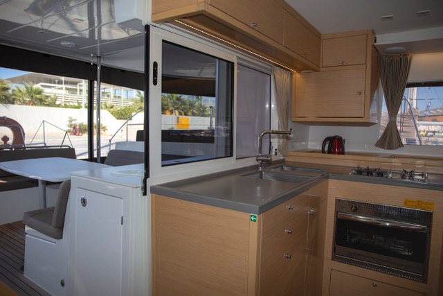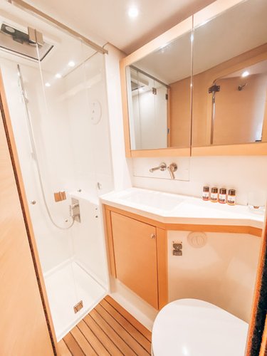 Your next sailing vacation will be perfect on board of this truly beautiful Piraeus Lagoon 450 Sport 45.8’ sailboat rental, ideal for a smooth and relaxed trip or an active itinerary for your friends or family to enjoy! This roomy Catamaran charter produced by Lagoon can comfortably accommodate up to 12 guests on a week-long trip.