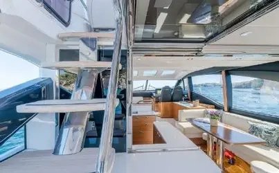 This spacious 62ft Princess motor yacht is perfect for groups of up to 12 guests. This modern and elegant yacht offers generous sunbathing areas, comfortable shaded lounges, and a stylish interior with 3 cabins and 2 bathrooms, making it ideal for a relaxing day at sea or a special celebration.