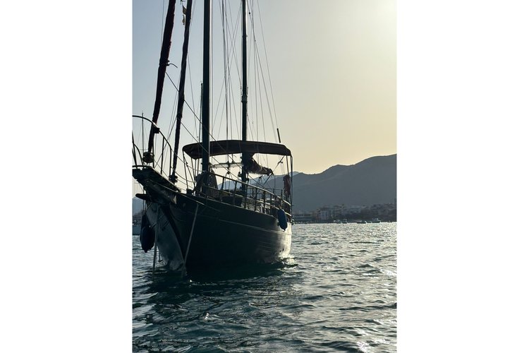 Over 12 meters in length, 3.65 meters in beam, 2 meters in draft, with two masts and a spacious aft balcony for enjoying the voyage. The interior features a large saloon with a fully equipped kitchen and three cabins, two of which are en suite.