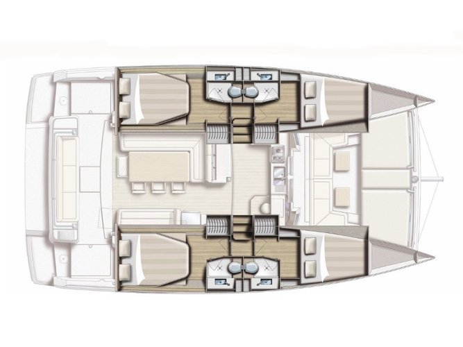 This boat has a maximum capacity of 10 people. It features 4 cabins with an overnight sleeping capacity of 10, 4 bathrooms, and 0 showers.