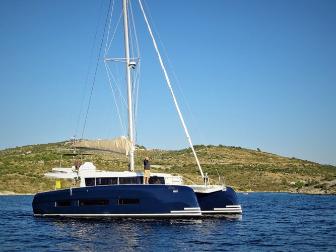 Take this stunning sailboat 48.2’ Dufour Yachts boat rental in Primošten, Croatia for a ride and enjoy sailing one of the best models made by this famous boat builder. Comfortably accommodating up to 12 guests, this Dufour Catamaran 48 Catamaran charter built in 2020 is a pleasure to navigate whether you are a well-versed sailor or relatively new to sailing and want to polish your skills as a captain.