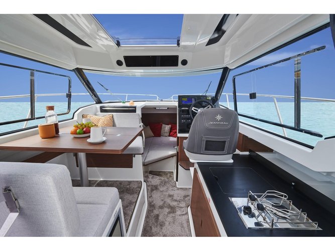 Imagine yourself at the helm of this gorgeous motor boat 26.7’ Jeanneau boat rental, setting sail to a great adventure from Pula, Croatia! Choose this beautiful Motor boat charter that accommodates up to 4 guests for a relaxed, comfortable sail to enjoy with your family or a group of friends.