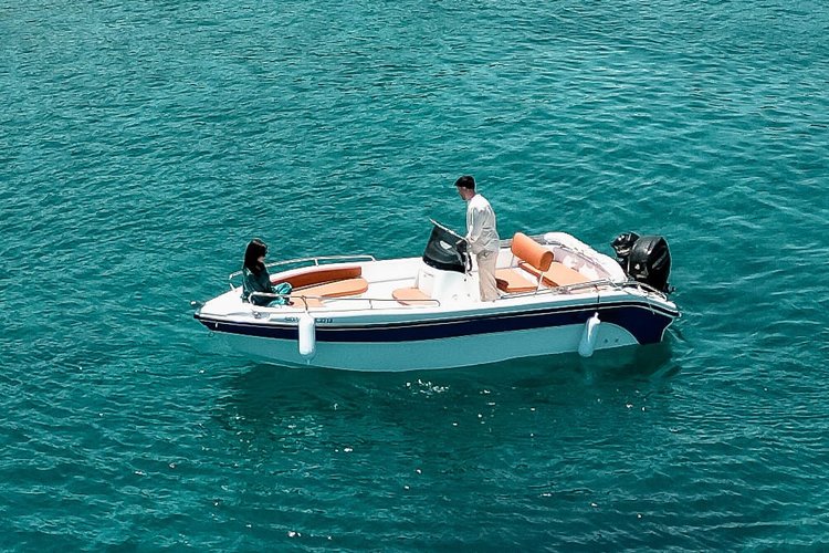 Explore the beautiful coast of Rhodes aboard, a comfortable and safe Blu Water 185 with a reliable 30HP engine – no license required! Ideal for couples, families, or small groups (up to 6 people), offers an easy-to-handle and fun boating experience.
