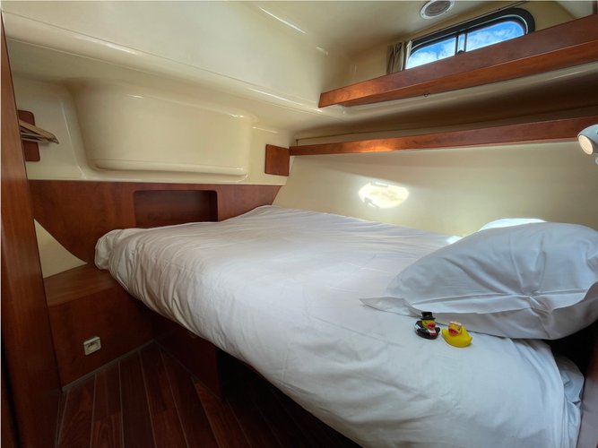 Your sailing holiday in France is guaranteed to be amazing on board of this Sablé-sur-Sarthe motor boat rental - a beautiful Nicols Estivale Duo from 2004. Choose this cozy and beautiful Motor boat charter that accommodates up to 4 guests for a relaxed, comfortable sail to enjoy with your group of friends or your family.