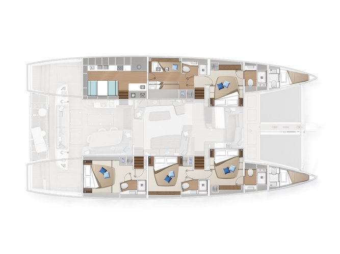 This sailboat has 5 cabins with 11 sleeps and 5 bathrooms. You can customize your sailing trip by further choosing from 12 extra services available for this sail yacht charter. The displayed boat rental price already includes the mandatory extras payable now. Check and choose from the optional extras on the next page by clicking the reservation button.