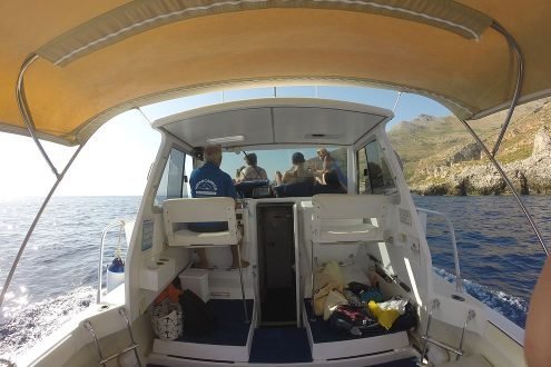 Enjoy a relaxing day on the water aboard this comfortable motorboat, perfect for exploring the beautiful coastline of San Vito Lo Capo. The boat accommodates up to 12 guests and features a sunbathing area, shaded seating, a freshwater shower, and a restroom for added comfort.