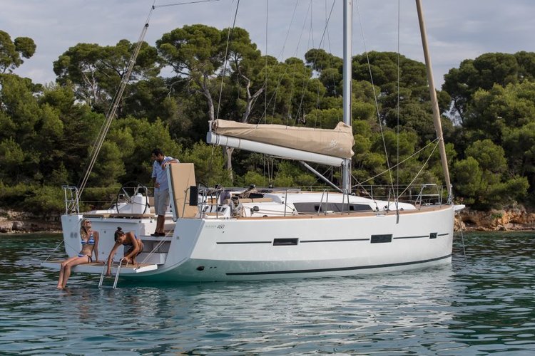 This is a 46.4 feet long sailboat rental that provides the guests with 5 cabins with 12 sleeps and 3 bathrooms. There are 122 extra services available for you to customize your trip on this sailboat charter. The mandatory extras payable now are already included in the rental price. By clicking the reservation button, you will be able to choose from the optional extras to further customize your sailing vacation.