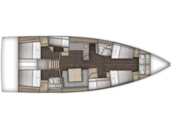 This is a 55.2 feet long sailboat rental that provides the guests with 6 cabins with 10 sleeps and 4 bathrooms. There are 27 extra services available for you to customize your trip on this sailboat charter. The mandatory extras payable now are already included in the rental price. By clicking the reservation button, you will be able to choose from the optional extras to further customize your sailing vacation.