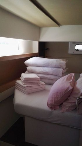This boat has a maximum capacity of 10 people. For guests it features 4 cabins with an overnight sleeping capacity of 8, 2 bathrooms and 2 showers. Additionally, for captains and crew it features 2 cabins with an overnight sleeping capacity of 2, 0 bathrooms, and 0 showers.