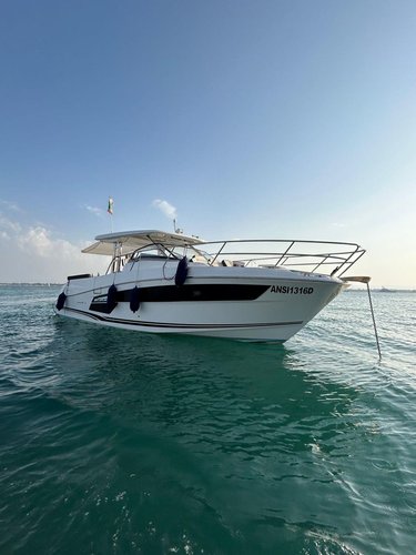 Let your captain show you the best and most exclusive spots in the waters of Italy on board of this awesome Sicily motor boat rental - a Cap Camarat 12.5 from 2022. This model is one of the most popular Motor boat produced by Jeanneau and can comfortably accommodate 10 guests for a week-long trip.