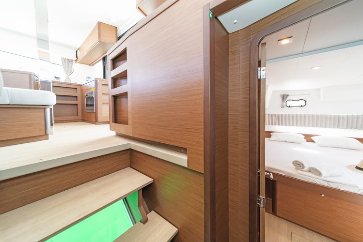 This 42.0 feet long charter has 6 cabins with 12 sleeps and 5 bathrooms. This boat has 62 additional services available. The required extras payable now are already included in the sailboat rental price. You can further customize your sailing adventure on this Sailo yacht charter by clicking the reservation button. On the next page you can select the optional services for your trip.