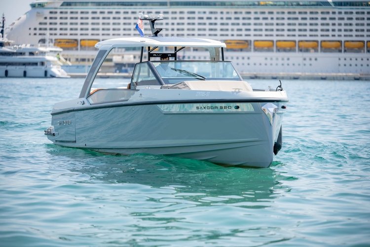 The Saxdor 320 GTO is a modern and stylish motor boat, perfect for day trips and exploring the Adriatic coast. The boat accommodates up to 8 guests and offers comfortable seating areas, a sunbathing space, and a spacious cockpit for relaxing during the trip.