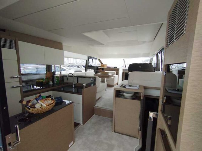 Sailing the coast of Croatia on this amazing Split motor boat rental, model Prestige 520 Fly , is going to be a truly memorable experience for you and your family or friends! One of the best in its category, this Motor yacht charter that can accommodate comfortably up to 7 guests is perfect for a day trip or a relaxed week-long trip.
