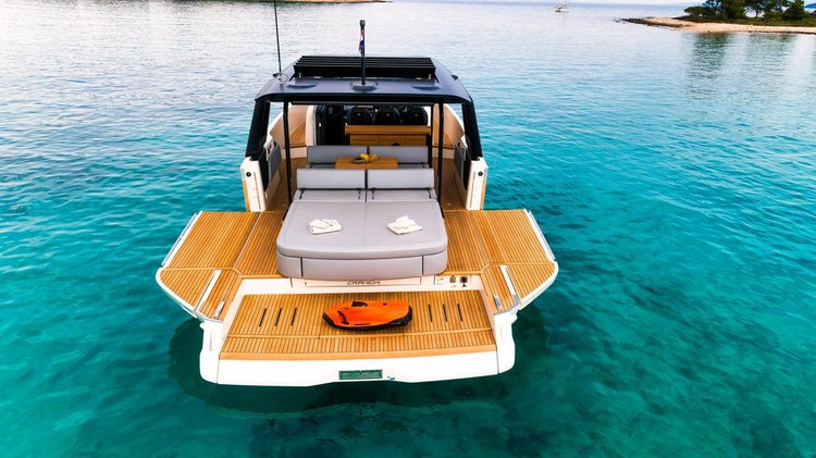 Take this stunning motor boat 46.8’ Cranchi boat rental in Split region, Croatia for a ride and enjoy sailing one of the best models made by this famous boat builder. The Cranchi A46 Motor yacht built in 2024 can accommodate up to 4 guests and has all the onboard facilities for your friends and family to feel comfortable, relaxed and safe.