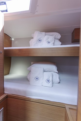 This boat has a maximum capacity of 13 people. For guests it features 6 cabins with an overnight sleeping capacity of 13 (1 of which is in the common area), 3 bathrooms and 0 showers. Additionally, for captains and crew it features 1 cabin with an overnight sleeping capacity of 1, 0 bathrooms, and 0 showers.