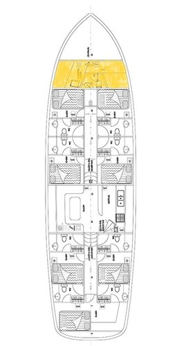 The guests on this sailboat will be sharing 7 cabins with 14 sleeps and 7 bathrooms. This boat has 16 additional services available. Required extras payable now are already included in the boat rental price. Click the reservation button to check the optional extras that allow you to customize your sailing trip.