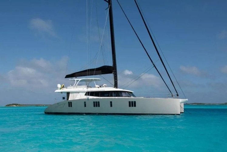 The 74ft Sunreef Sailing Catamaran is a striking blend of luxury, performance, and sailing elegance, making her one of the most impressive ways to experience the Bahamas. With her wide beam, dual hull stability, and powerful sail plan, she delivers an exceptionally smooth and spacious cruising experience. Whether under sail or motor, the Sunreef 74 glides effortlessly through Bahamian waters, offering a refined adventure from her home port in Staniel Cay.
