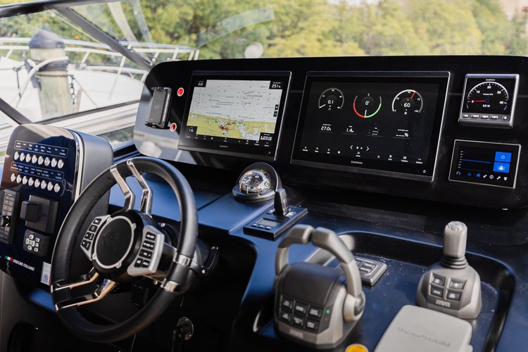 Powered by twin Volvo Penta IPS engines, the yacht delivers smooth cruising, excellent maneuverability, and an exciting performance on the water.
