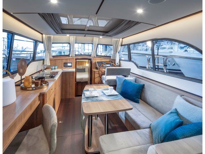 There are 1 cabin with 2 sleeps and 1 bathroom available for your family or group of friends. We want your experience on this Sailo motor yacht charter to be one of the best that you have ever had. This boat has 6 extra services available. The boat rental price displayed on the right hand-side of this page already includes the mandatory extras that are payable now. Click on the reservation button to go to the next page where you can further customize your trip by adding optional services.