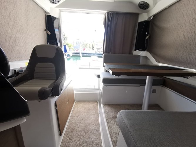 Take this stunning motor boat 26.1’ Jeanneau boat rental in Zadar region, Croatia for a ride and enjoy sailing one of the best models made by this famous boat builder. The Merry Fisher 795 Motor boat built in 2019 can accommodate up to 4 guests and has all the onboard facilities for your friends and family to feel comfortable, relaxed and safe.